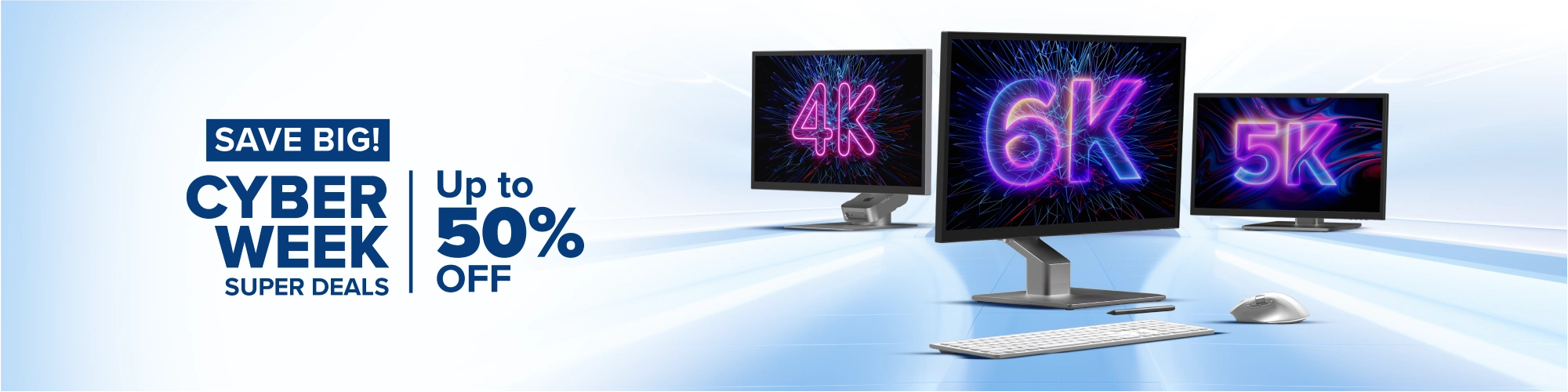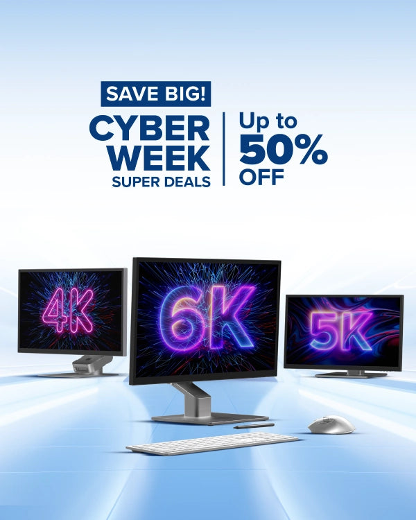 Discover unbeatable Cyber Week deals with up to 25% off our monitors like 4K, 5K, and 6K monitors, built for creators, professionals, and home offices. Level up your desk setup and save up to 25% on ergonomic monitor arms, risers, and stands for all-day comfort. Take advantage of 25% off wireless keyboard and mouse that combine comfort and seamless performance, ideal for both Mac and Windows users, and HD webcams for crystal-clear video calls.